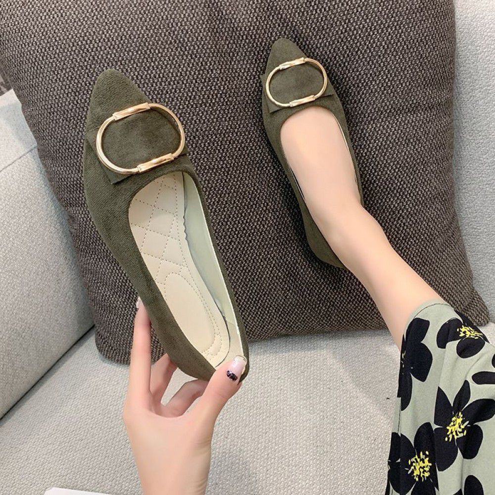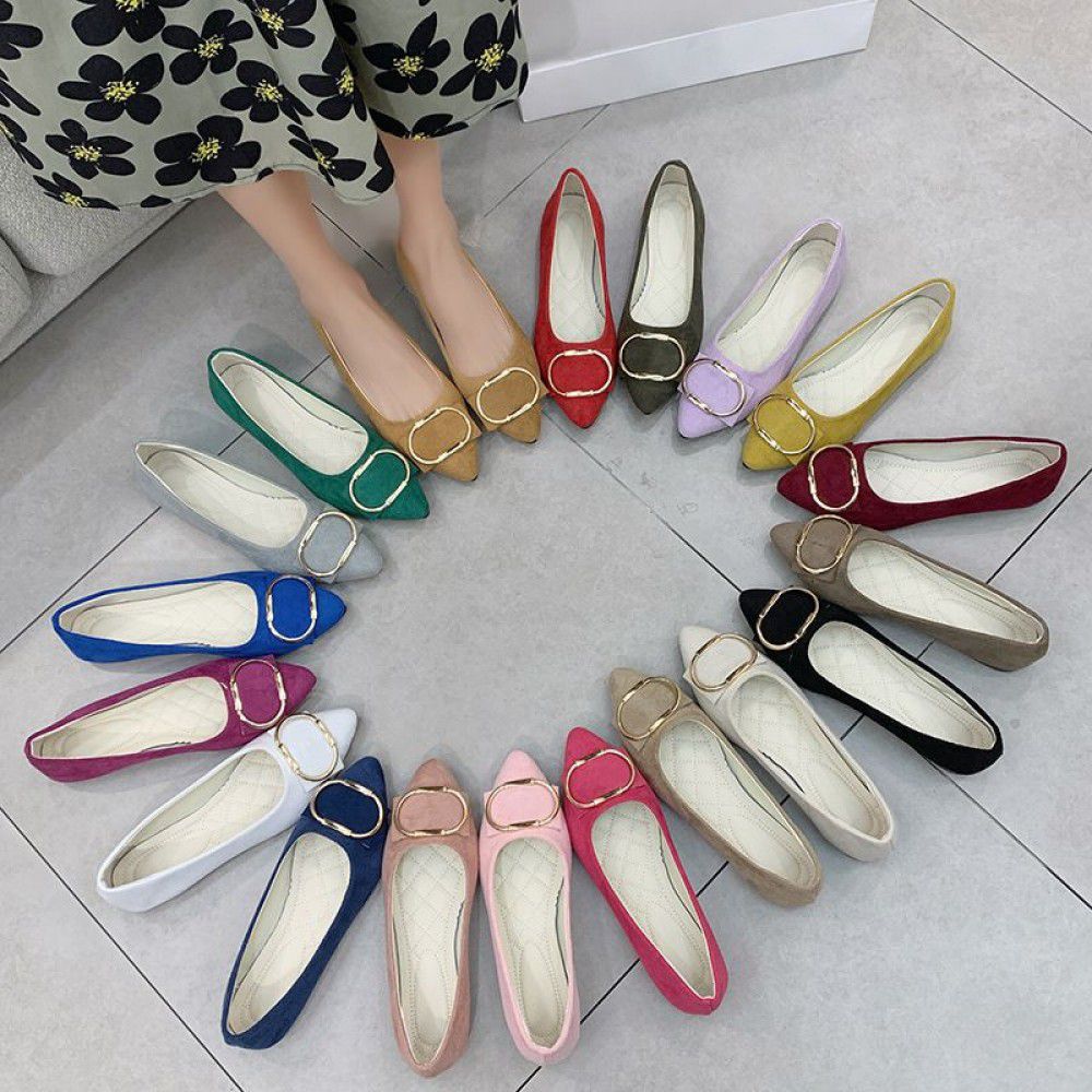 Single shoes: Women's large size foreign trade new pointed flat shoes in spring, summer, autumn and winter of 2022, women's Suede multi-color single shoes 4243