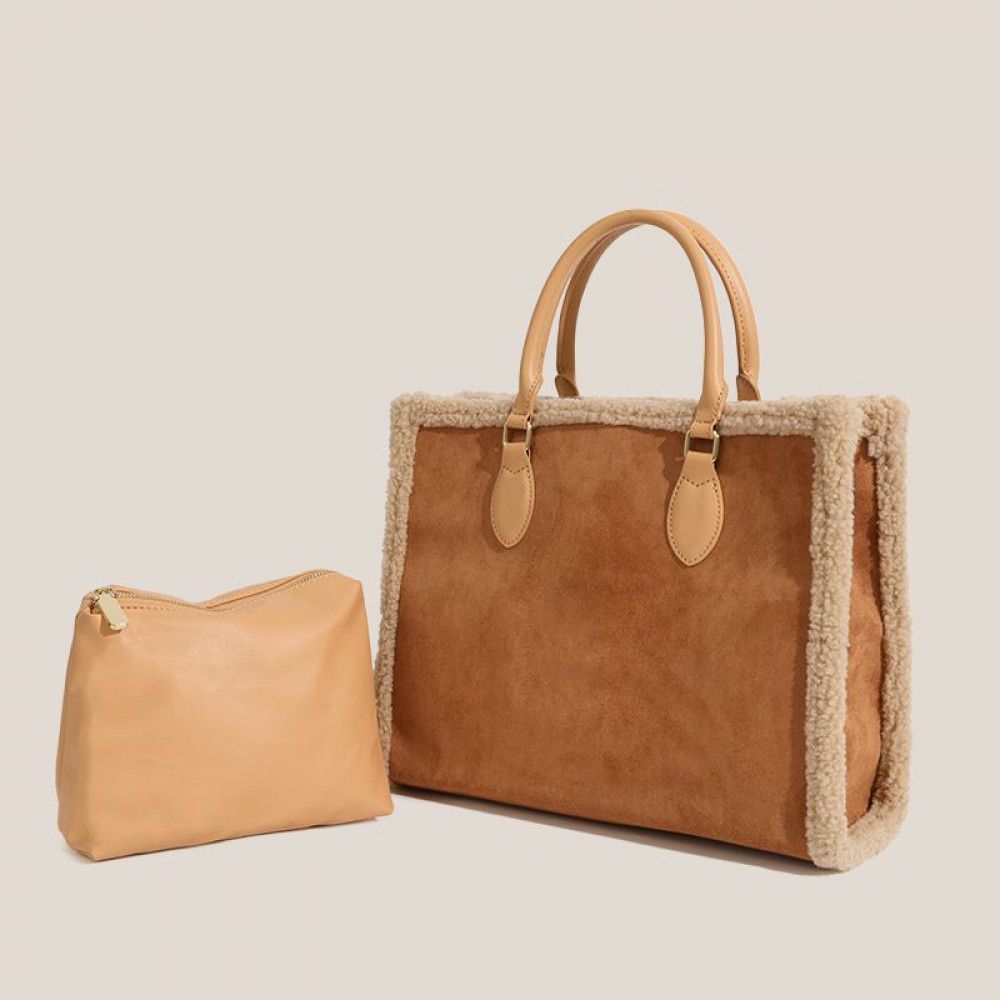 Xiaozhongchao brand autumn and winter new plush bag large capacity contrast frosted single shoulder bag versatile tot steamed stuffed bun female bag