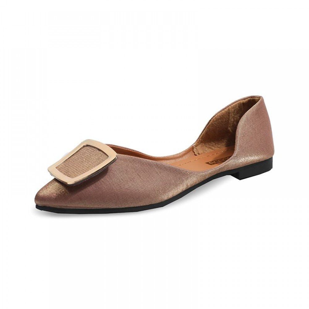 autumn and summer Hanwang red pointed low heel flat bottom metal buckle retro grandma shoes single shoes solid women's shoes