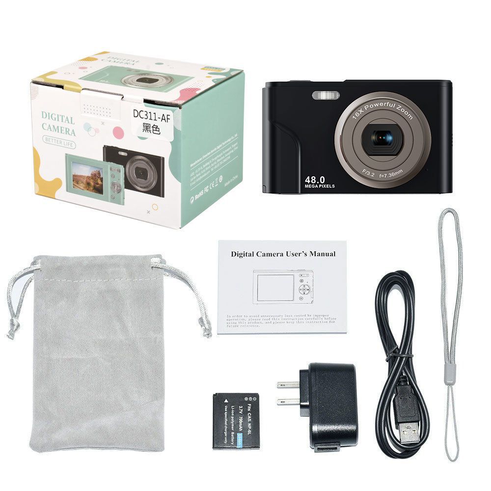 清单:说明书、收纳袋、机子、挂绳、电池、充电头、充电线